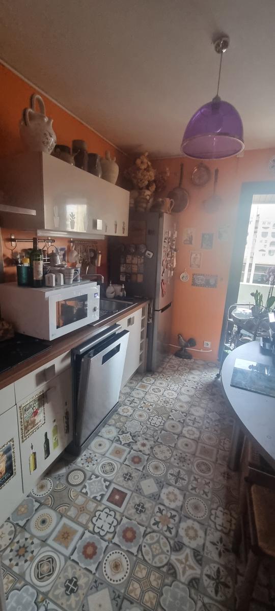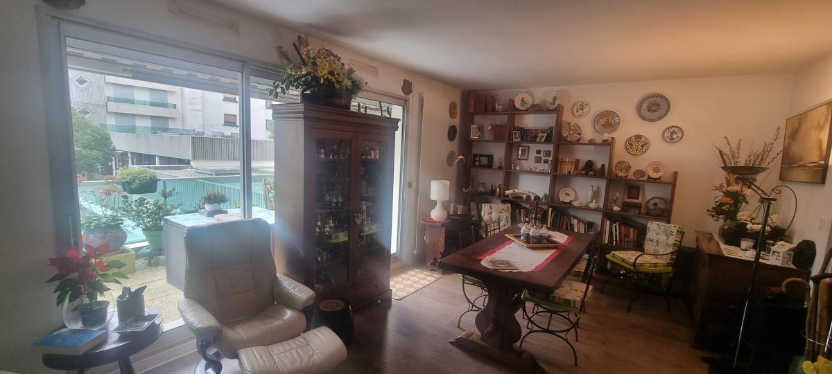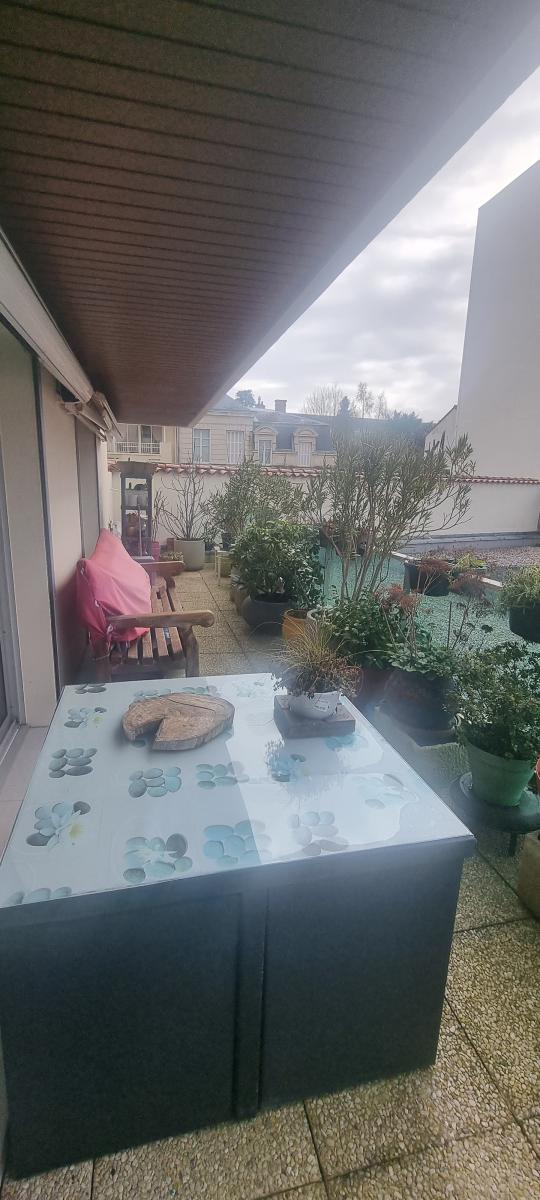 NIORT CENTRE-VILLE comprenant: une entrée avec placard, une cuisine aménagée et équipée (plaque, hotte) donnant accès vers un balcon filant, trois chambres ayant accès également au balcon, une salle de bains, un wc, une buanderie, un séjour-salon donnant sur une terrrasse coté cour. Au sous-sol: une cave. Place de parking. Charges de copropriété trimestrielles : 487,36 euros.