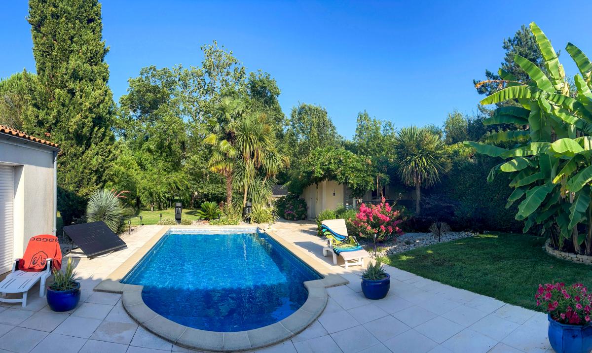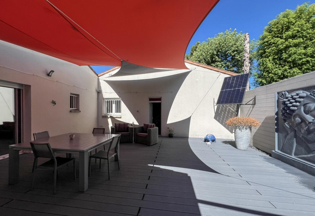 Au cœur de Magné, et à l'abri des regards, pavillon de plain-pied de 253 m² comprenant: Une entrée, un wc, un cellier/chaufferie aménagé avec adoucisseur, une cuisine aménagée et équipée (plaque, hotte, four, réfrigérateur américain), une salle à manger ouverte sur un salon (70 m²) donnant accès vers la terrasse, une salle de jeux, un bureau, une salle de cinéma équipée, un local technique home cinéma, un rangement/débarras, une salle de bains, une salle d’eau commune à la chambre 3 et 4, quatre chambres, un deuxième wc (partie nuit), un rangement, un dégagement. Un garage deux voitures chauffé. Un deuxième garage deux voitures avec un faux grenier. Une cave à vin . Un grenier de 83 m². une cabane de jardin, une pool house/cuisine d’été, une véranda/préau sur ciment de 3,04 m², un appenti/carport 1 voiture, une piscine 8 X4 mètres avec une bâches été et hiver, un robot de nettoyage et un liner de 8 ans. Une terrasse de 121 m² avec store banne. Une terrasse d’été avec fontaine/cascade bouddha de 60,40 m². Un puits avec une profondeur de 2 mètres. Le tout sur un terrain entièrement paysagé et clos de 1 957 m². Panneaux solaires, vidéosurveillance, aspiration centralisée, arrosage automatique alimenté par le puits, allée en enrobé.