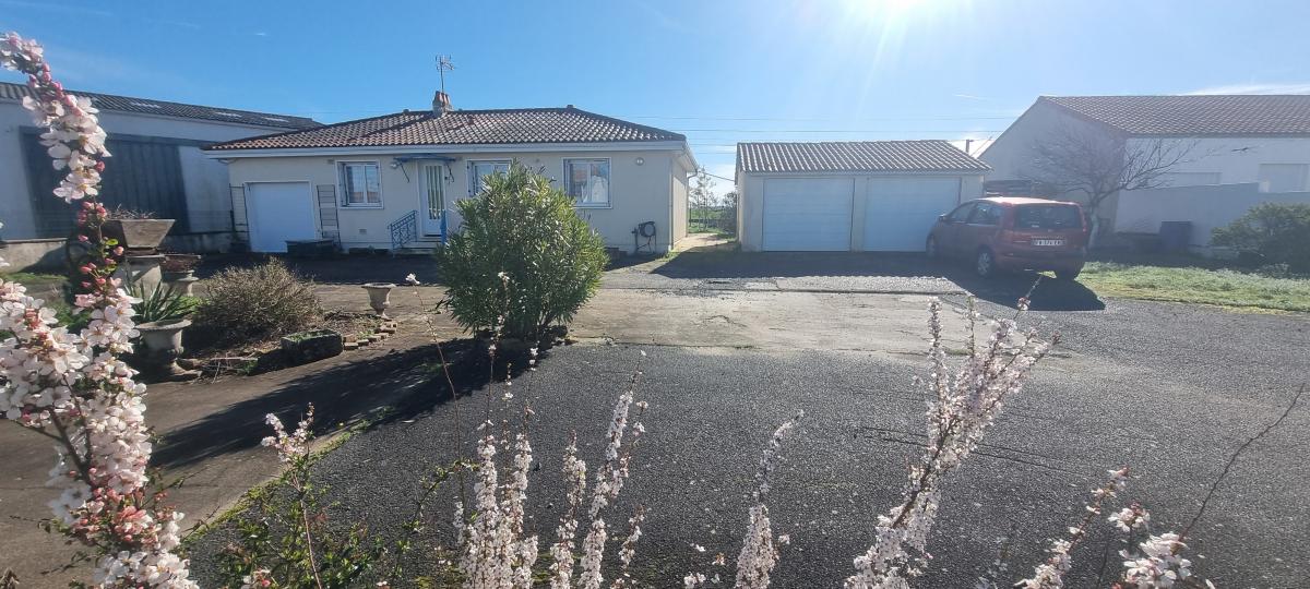 LA CRECHE, pavillon de plain-pied comprenant: une entrée, un dégagement avec placard, un wc, une salle d'eau, trois chambres, un séjour-salon, une cuisine aménagée, une arrière-cuisine, une véranda. Non attenant: un garage de 36 m². Le tout sur un terrain de 866 m².