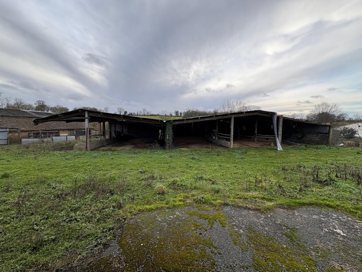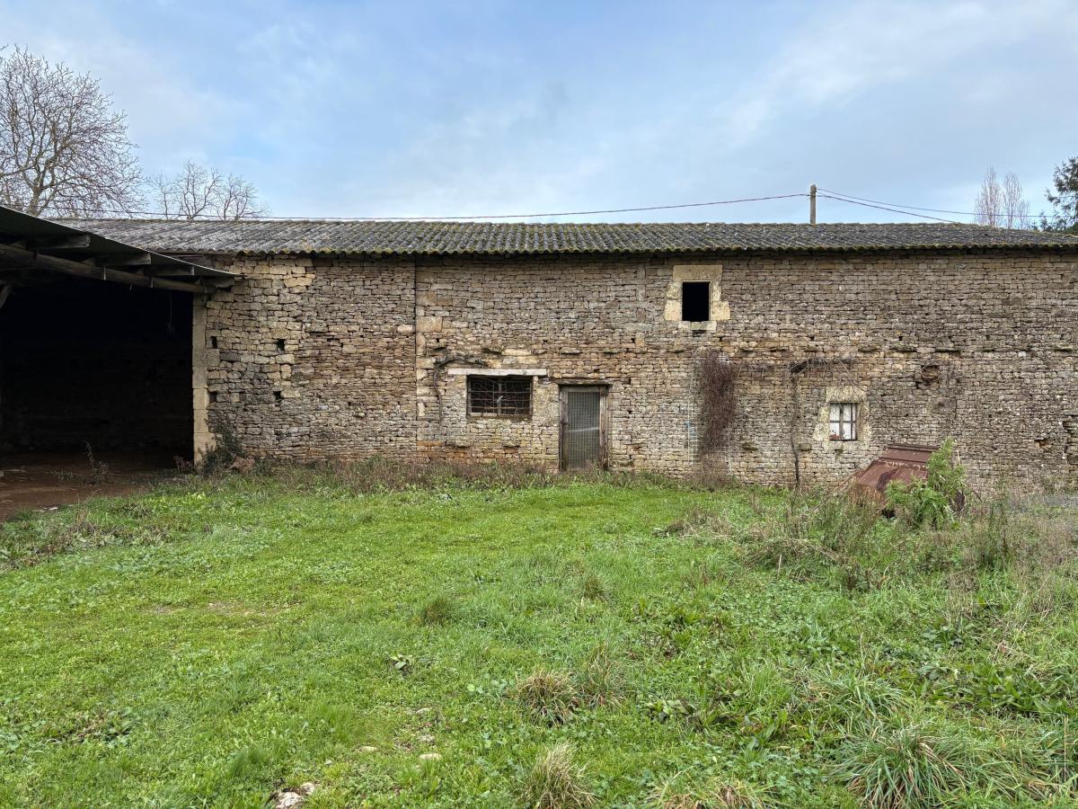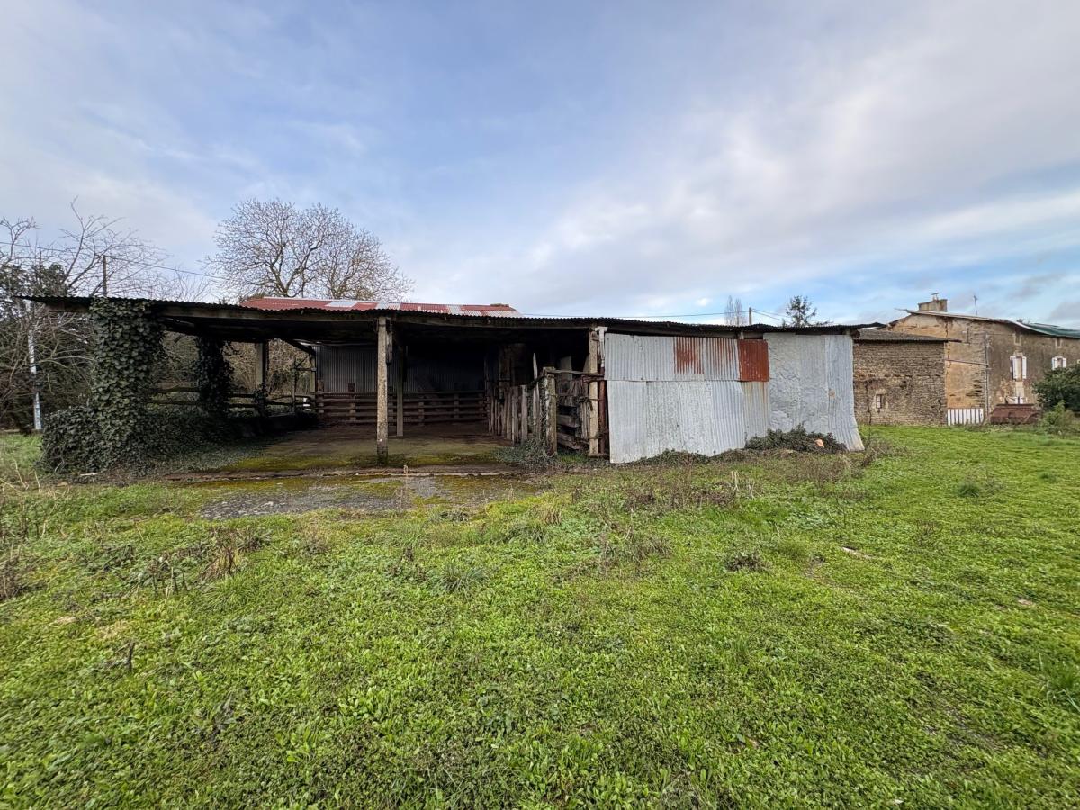 AIGONNAY, un ensemble de bâtiments comprenant: un bâtiment en tole de 268 m² sur terre battue + 168 m², un deuxième bâtiment en tole de 122,29 m², un troisième bâtiment en tôle de 54,45 m². Une grange en pierre de 61, 67 m² et une deuxième grange en pierre de 60 m²;
