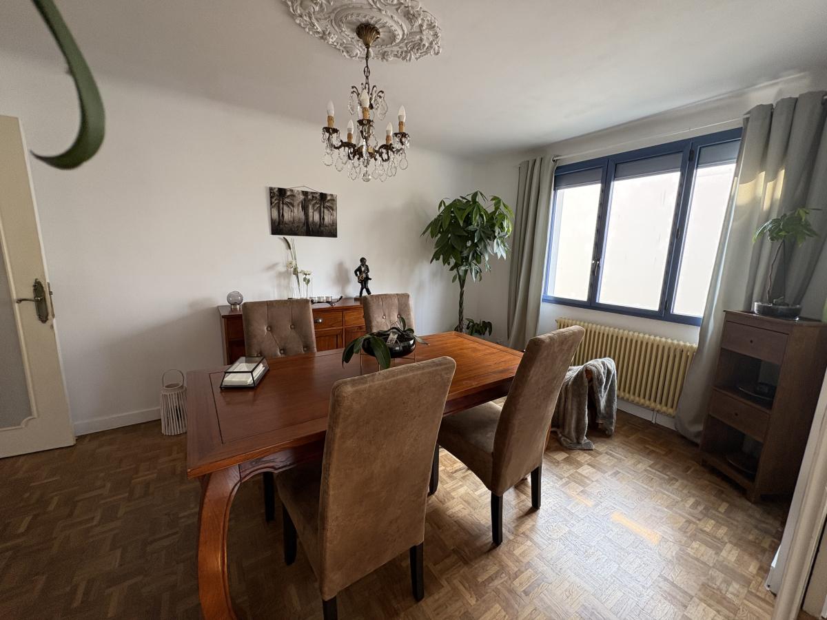 NIORT QUARTIER SOUCHE, pavillon sur sous sol de 174 m² comprenant: à l'étage: une entrée, une cuisine aménagée et équipée (plaque, hotte), un salon, une salle à manger, un dégagement, une chambre, une salle de bains, un wc, deux chambres. Au sous-sol: un dégagement, un garage, une buanderie, un studio comprenant: un dégagement, une cuisine aménagée, une salle d'eau avec un wc, une chambre. Le tout sur un terrain clos de 1210 m². Chaudière gaz de ville de 2014.