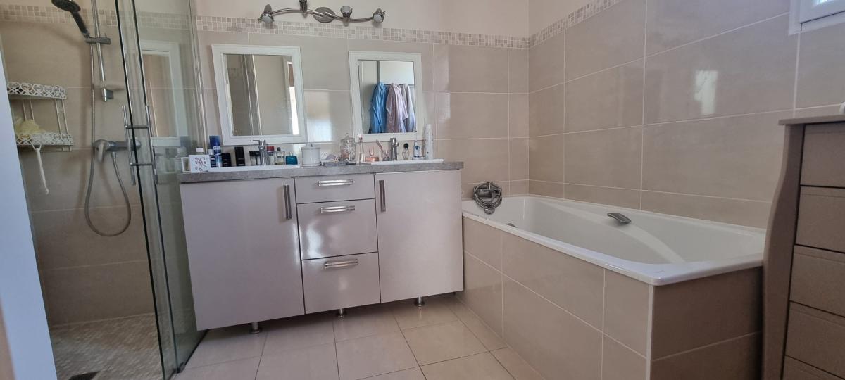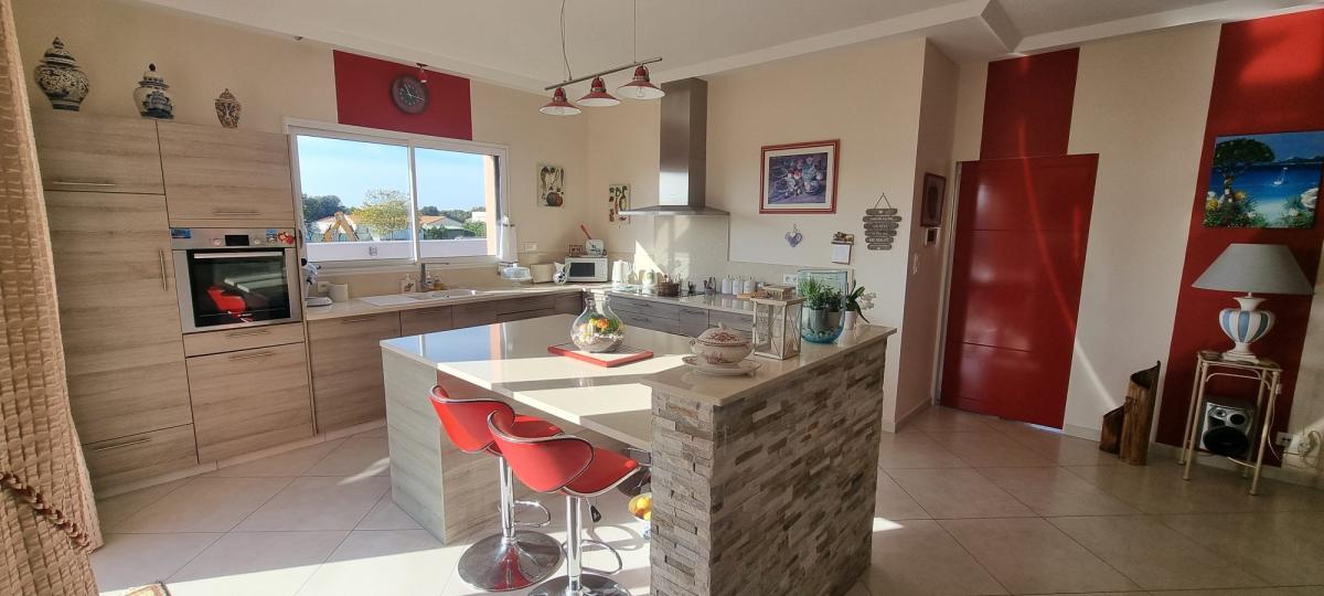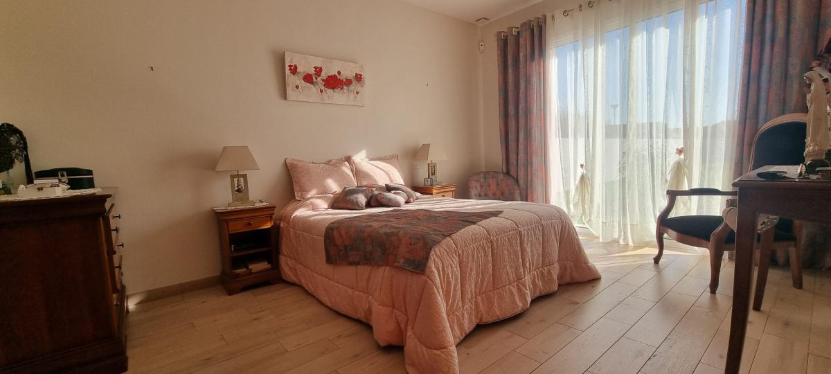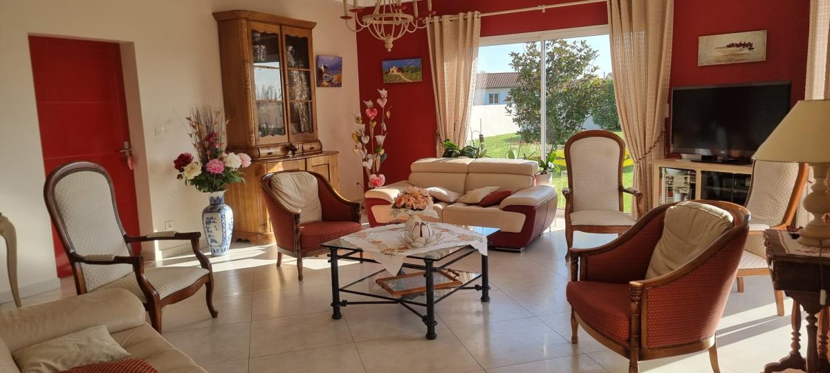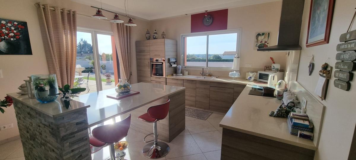 AIFFRES, belle propriété sur 1 215 m² de terrain clos et arboré comprenant: au rez-de-chaussée: une pièce de vie de 84,09 m² avec une coin cuisine aménagée et équipée (plaque, hotte, four, lave-vaisselle), un dégagement, un bureau (possibilité chambre), une arrière-cuisine aménagée, un wc, une chambre avec une salle d'eau, une deuxième chambre avec salle d'eau et dressing. A l'étage: un palier, une chambre avec salle d'eau. Un garage double. Terrasse carrelée, allée goudronnée, visiophone, portail électrique. Chauffage au sol. Ouvertures en aluminium.